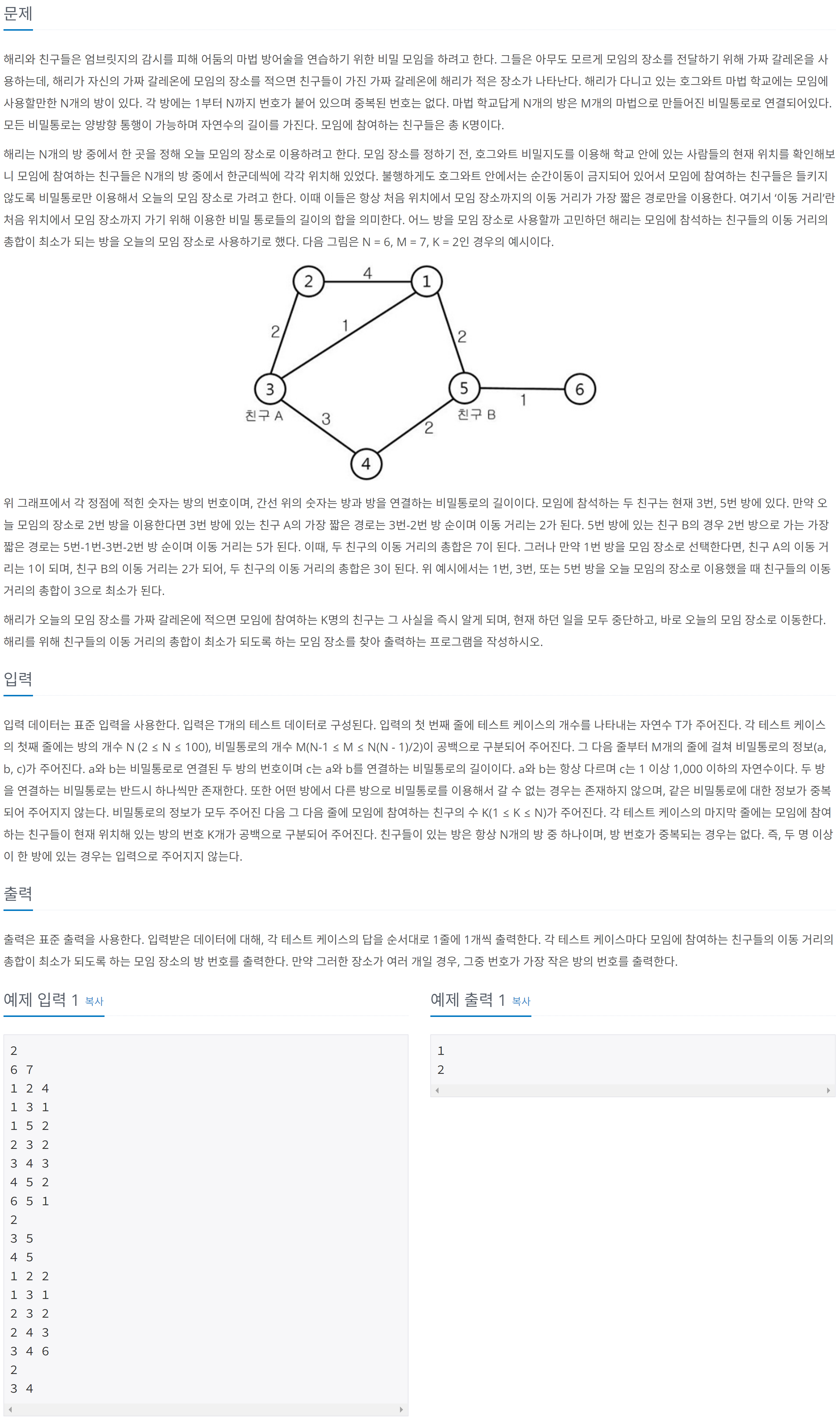int min = INF; // 친구들의 이동 거리 총합의 최솟값
