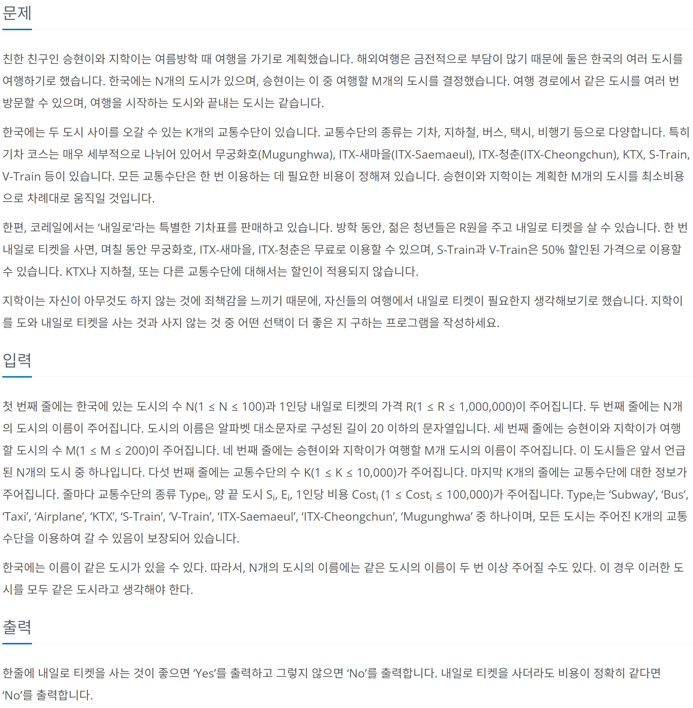 int cost = Integer.parseInt(st.nextToken()); // 내일로 티켓 가격