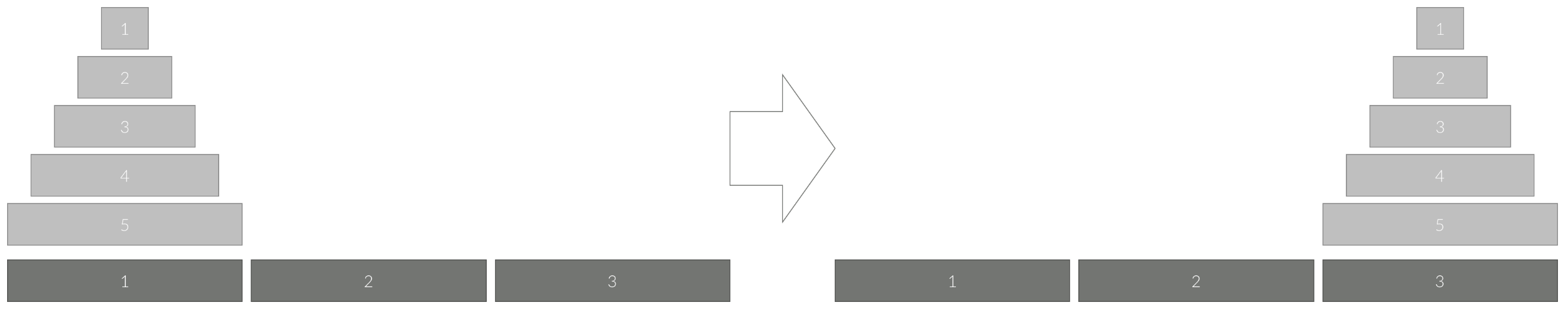 3. (n-1) 개의 원반을 2번에서 3번으로 옮김
