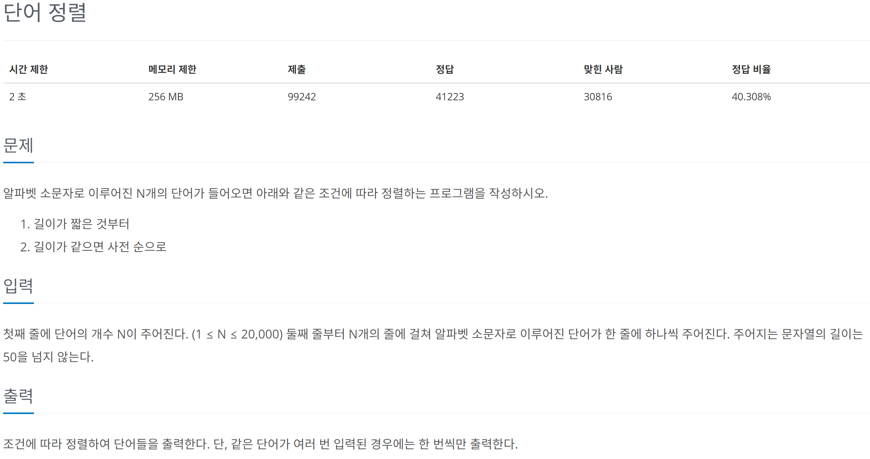 return s1.length() - s2.length(); // 길이 오름차순 정렬