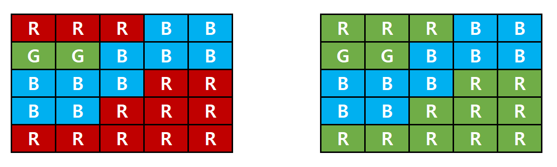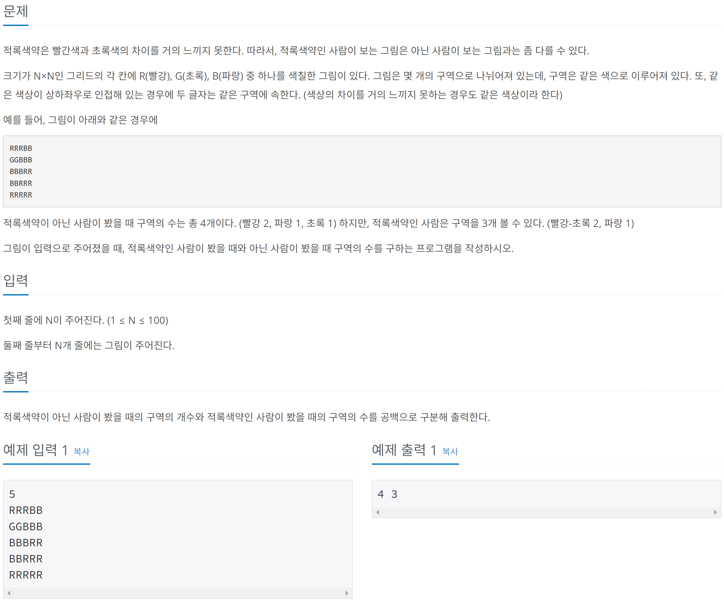 // 적록색약인 경우 초록색과 빨간색을 구분하지 못함 = 하나의 구역으로 본다